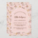 An arch frame on a pattern of pampas grass and pink flowers and a golden cross. Personalise and add a name and details.