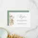A modern wedding reception card with black script and watercolor pampas grass and sage green theme.