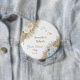 Elegant boho modern floral pampas grass gender reveal He or She baby shower party button featuring watercolor illustration of pampas grass botanical with pink rose and dusty blue flowers. You can customise this beautiful button with your own text.