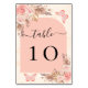 Golden marble and a rose gold arch decorated with boho style pampas grass, rose gold and blush pink florals, butterflies.  Personalise and add your table numbers one by one.