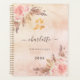A rustic rose gold and pink background. Decorated with rose gold, pink florals, pampas grass. Personalise and add your business logo, name, title and year. The name is written with a modern hand lettered style script.