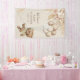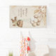 Bohemian bear baby shower banner featuring a light brown background, a vintage watercolor boy baby bear, balloons, rustic boho pampas grass & florals, plus a modern text template that is easy to personalise.