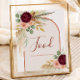Direct guests to your fall-inspired menu with this Fall in Love Bridal Shower food table sign. Featuring a seasonal watercolor bouquet of burgundy chrysanthemums, blush roses, golden autumn leaves, pampas grass, sage eucalyptus, and rustic pheasant feathers, set within a terracotta rust orange arch on a white background. Customisable text lets you describe menu items, buffet instructions, or dietary notes. Pairs beautifully with coordinating plates, napkins, and table decor in the Fall in Love collection.