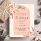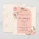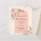 For a modern boho style wedding. An arch frame and rose gold marble print as background. Decorated with rose gold and pink florals, roses and pampas grass. Personalize and add names and details.