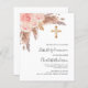 Rose gold and blush pink florals, roses and pampas grass and a golden cross. Personalise and add a name and details.