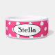 Pamper your pet with a custom large bowl, polka dots and personalisation. Made of 100% white ceramic. A happy pet makes a happy owner.