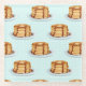 A pattern of delicious pancake stacks on plates, covered in maple syrup and surrounded in polkadots. The background colour is a nice minty green! This fun and tasty pancake pattern is a great gift idea for foodies and pancake lovers alike!