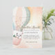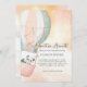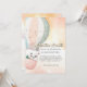 Share the anticipation of your new arrival with this adventurous, hot air balloon themed baby shower invitation. Design features a whimsical peach and blue grey striped hot air balloon. A cute little panda character for a shower that features bringing a gift of a child's book.