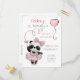 Little girl's 1st birthday party invitation postcard with an adorable panda bear ballerina wearing a cute pink tutu. A pink balloon floats nearby with the age of your child. Contact us for help with customisation or to request matching products.