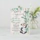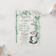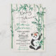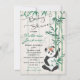 Pretty and sweet Panda Bear with stalks of bamboo on an antique linen background. Perfect for a tropical baby shower!