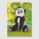 3D digital render of a panda bear and green bamboo plants on a colourful background