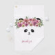 Anyone for a cute panda golf towel? A pretty panda bear wearing a floral crown of roses and lilies. Just add your name!