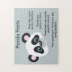 A cute jigsaw puzzle, discover fun panda facts. Featuring a blue background with a panda illustration the front of the eraser features several panda facts. This is a great way to learn new information.