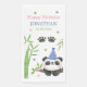 Cute baby panda kids birthday napkins featuring an adorable panda wearing party hat with a panda footprint, bamboo and stars at the background.