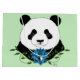 Portrait of a cute Panda bear with a blue lotus flower in a backdrop of green