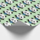 Panda Bear Lotus Flower Blue Wrapping Paper