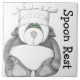 Trivet spoon rest with picture of panda bear wearing a chef's hat. Originally drawn in pencil on paper. Cute gift for the chef or cook and even mum!