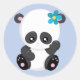 Such a cute friendly panda, this one is waving at you. Displayed on a blue background this panda bear greets you with joy in her eyes. A beautiful blue flower is featured on her head. Purchase your panda bear stickers today!