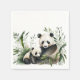 Watercolor cute panda bear in bamboo leaves with a cub on a white background.