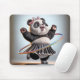 A joyful panda wearing a bow and flowers twirls a colourful hula hoop while wearing a small pleated skirt and saddle shoes.