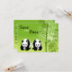 Panda Bears and Bamboo Wedding Save the Date Announcement in Green, Black and White.