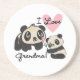 Two panda bears, a pink heart, pink flowers, and text that reads I Love Grandma on T-shirts, bodysuits, bibs, bags, mugs, and other items great for grandma's girl!