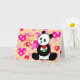 Cute and sweet baby Panda Mother's Day greeting card with pink hearts pattern. He/She has a heart flower and looking up at somebody with love. Nice gifts for those who love Panda Bears. You can customise text as you like. Happy and Cute Panda Cartoon created by Naomi Ochiai from Japan.