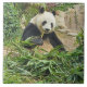 A beautiful photograph of a panda eating bamboo printed on a ceramic tile.