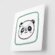 A cute painted-style panda with soft blushing cheeks, framed by a cool green square in a playful minimalist design.