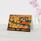 Our cute little black and white panda friend wants to help you say Happy Halloween to a fantastic little boy or girl. He's wearing an adorable orange pumpkin costume with a green stem on his hat and carrying an orange jack-o-lantern treat bag. Our little friend stands in the middle of a big pumpkin patch surrounded by big and small, bright orange pumpkins. A great surprise for someone who loves panda bears or pumpkins and autumn. A cute, whimsical art illustration on a photo background created by artist Bethany J. Mitchell of Darcy Place Studio. More about our art and artists at www.darcyplacestudio.com. Click the CUSTOMIZE IT button to change the text to personalise with someone's name or relationship to you.
