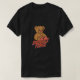 I give wanted to give this a 4 instead of a 5 because these Basic DARK T0shirts run unexpectedly SLIM or Narrow. Which is great if you do not have a potbelly, but I have a paunch. It isn't the shirt's fault that I've got a beer belly. The design and shirt itself is a quality cotton shirt. The color is more of a deep purple, but still a very pretty color. The Basic DARK T-shirts run a bit SLIMMER than the Basic Ts. The neck is a fraction narrower (or seems to be narrower) also. I'm a paunchy middle-aged woman and my neck is 12 inches (31cm) thick and the neckline fell about the same as in the photo of the man, and I had the desire to tug it a bit. So if you're a thick necked man or like loose shirts, be aware these are slimmer shirts. Once I get rid of my lockdown paunch it'll look great. The shirt washed well in cold water with no apparent bleeding. We don't have a dryer, so it hung dry. Did not shrink. Love the colors and the design. The design looks smaller on my shirt than it does on the model on-line. But still, it looks good on the shirt. The printing looks as it does on the model, just the size seems fractionally smaller. Washed garment in cold water, hung dry and design appeared unaffected.