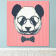 This design features a hand drawn panda with sunglasses and bow tie.