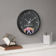 The size of the clock is dramatic and the abstract alcohol ink design is soothing and intricate at the same time. I chose the black frame that adds pop to the blue and gold design. The gold printing would be better in a slightly darker or larger font. I love it and I’m looking for just the right place in ny new apartment. I would recommend this clock for a personal gift or a present. I feel that the quality is excellent for the money! I’m a bit of a clock nut so I’m pretty particular about my purchases. The clock is larger in diameter than many if the clocks I have, so it stands out very well. I think a slightly darker printing color and a moderately larger size would best suit a professional decor or add more impact in a work place item.