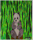Drawing of a panda sitting surrounded by bamboo.