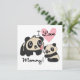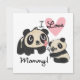 A mummy and baby panda bear design with a pink background and text and white hearts and text that reads I Love Mummy on T-shirts, bodysuits, mugs, cards, stickers, bags, magnets, and more.
