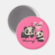 A mummy and baby panda bear design with a pink background and text and white hearts and text that reads I Love Mummy on T-shirts, bodysuits, mugs, cards, stickers, bags, magnets, and more.