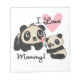 A mummy and baby panda bear design with a pink background and text and white hearts and text that reads I Love Mummy on T-shirts, bodysuits, mugs, cards, stickers, bags, magnets, and more.
