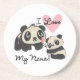 Two panda bears, a baby panda and nana panda with a pink heart and text that reads I Love My Nana on T-shirts, bodysuits, bags, mugs, cards, stickers, key chains, magnets, and other items!