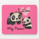 Two panda bears, a baby panda and nana panda with a pink heart and text that reads I Love My Nana on T-shirts, bodysuits, bags, mugs, cards, stickers, key chains, magnets, and other items!