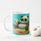 A fluffy and content panda enjoys a perfect summer day, relaxing in a vibrant, floral pool float. Sporting stylish yellow sunglasses and holding an ice-cold can of Coca-Cola, this adorable character is the very picture of ultimate relaxation and cool summer vibes.