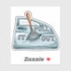A funny illustration of a car door which has been dented in an accident. A plunger is being used to pull the deed out. The text reads pull it out. A funny design for anyone who works in a panel repair shop.
