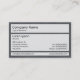 A business card template with a three panelled design on the front, with a header, body and footer layout for all the main details. On the reverse of the card there is a single main panel which can be used to add additional details and or images or left blank providing a useful note panel. This version has an image texture in the background with semi transparent white panels allowing the texture to show through without detracting from the clarity of the text. This template can also be further customised, e.g. a logo could be added to the left in the header panel, the fonts and background colour can also be changed. Suitable for many types of business. A growing range of other variations of this template are also available.