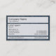 A business card template with a three panelled design on the front, with a header, body and footer layout for all the main details. On the reverse of the card there is a single main panel which can be used to add additional details and or images or left blank providing a useful note panel. This version has an image texture in the background with semi transparent white panels allowing the texture to show through without detracting from the clarity of the text. This template can also be further customised, e.g. a logo could be added to the left in the header panel, the fonts and background colour can also be changed. Suitable for many types of business. A growing range of other variations of this template are also available.