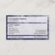 A business card template with a three panelled design on the front, with a header, body and footer layout for all the main details. On the reverse of the card there is a single main panel which can be used to add additional details and or images or left blank providing a useful note panel. This version has an image texture in the background with semi transparent white panels allowing the texture to show through without detracting from the clarity of the text. This template can also be further customised, e.g. a logo could be added to the left in the header panel, the fonts and background colour can also be changed. Suitable for many types of business. A growing range of other variations of this template are also available.