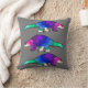 This rainbow pangolin pillow is sure to brighten any room. This brightly coloured pangolin is on a grey background. Colours include teals, blues purples and pinks.