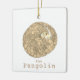 at christmass as a hanging decration for the chritmass tree.. its white porcline or cramic but very well made with added photo on one side.. also has a lovley red bag to keep it in.. execlent printed text in bold and black stands out well aganst the blue background of the photo.