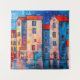 Panorama of street with colourful homes. Impressionist mixed abstract art colour.