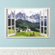 Panoramic mountain view from your home by window illusion Canvas Print.