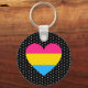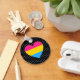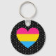 A heart with the colors of the pansexual pride flag. Black background with small white dots on.