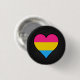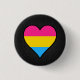 Classic Round Button with heart design in colours of pansexuality; pink, yellow and blue stripes pride flag, rainbow love design